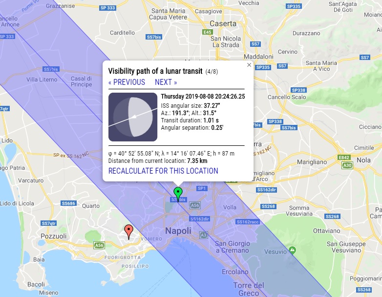 Io l'ho appena beccata, 21:30 SW / NE è passata sotto Giove, stavo preparando fuori il telescopio e mentre controllavo i settaggi dei cercatori su Giove mi è passato un faro nel cercatore, ho dato uno sguardo sotto Giove pensando a un aereo ma nessuna luce lampeggiante, avevo il 26mm montato e l'ho puntata, fantastico! Sono riuscito agevolmente a seguirla, si vedeva già un po' della struttura, ma soprattutto i pannelli solari sembrava cambiasse con i riflessi posizione, immagino per effetto dell'angolazione, mi era capitato di seguirla con il binocolo, ma mai l'avevo vista così chiara...