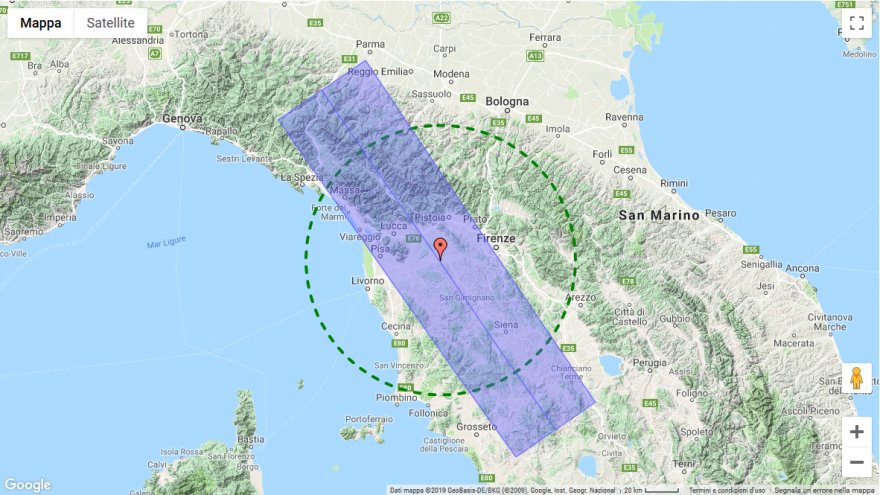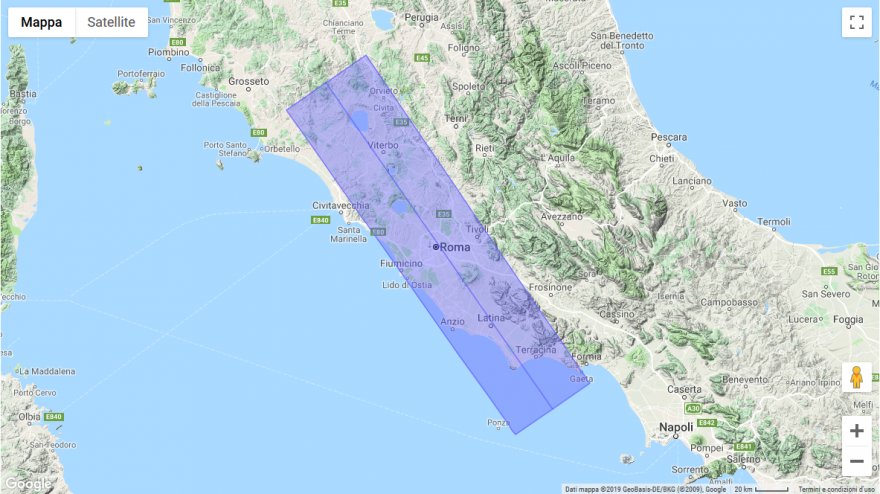 invece sfruttando le mappe del sito transit-finder ho ottenuto 5 immagini che rappresentano la fascia di visibilità dell'evento che attraversa l'Italia...