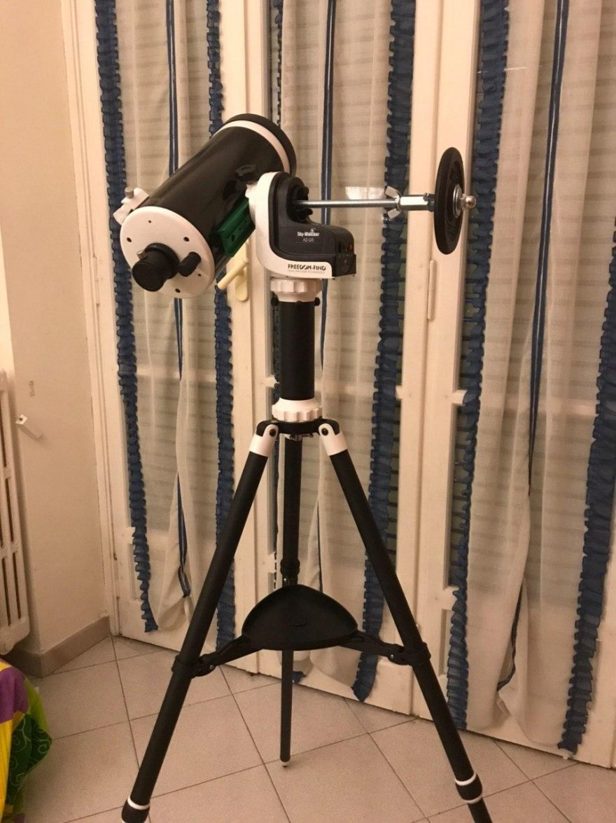 PS: avendo una massa concentrata così lontana dal baricentro, l'insieme vibra parecchio quando ci sono spostamenti nell'asse di azimuth. Con 2 kg questo effetto dovrebbe essere attenuato visto che andrebbe messo in una posizione più interna.