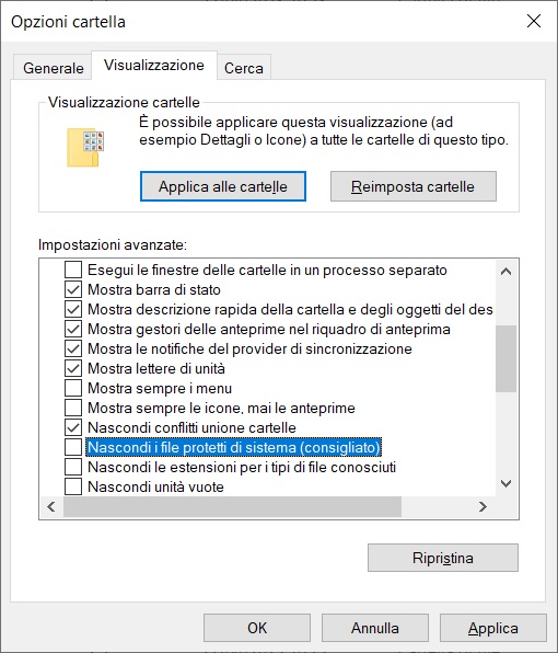 Cento per cento di aver abilitato in Windows Explorer (Esplora risorse) la visibilità completa di tutti i file, compresi quelli di sistema?