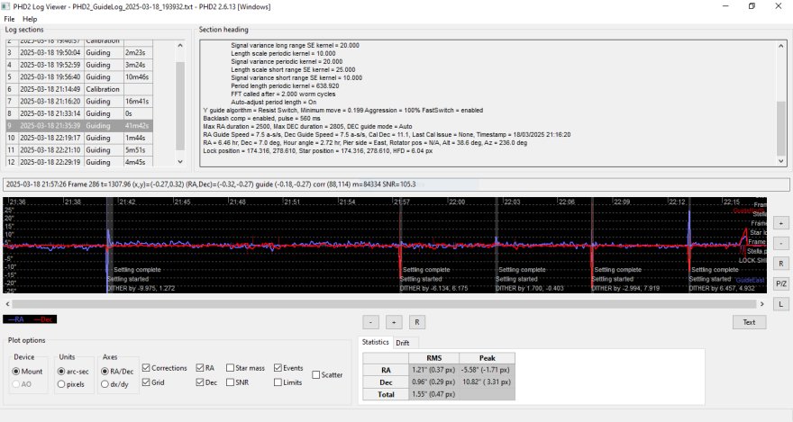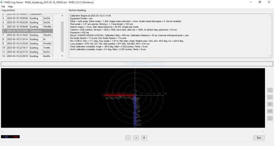 Vi allego il log di PHD2 della calibrazione e guida di ieri.