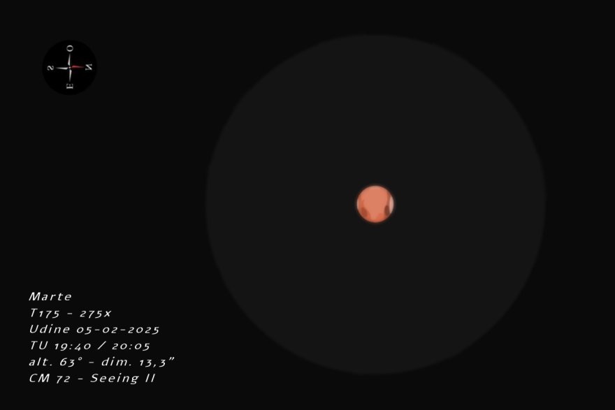 Ciao @vesna71, ti ringrazio. Una cosa che non sono mai riuscito a valutare bene è il seeing, mi rendo conto quando è buono o quando è proprio scadente ma non di più. A Novembre-Dicembre col Vixen 102M su Marte ci ho ricavato ben poco sia per il suo piccolo diametro sia per la turbolenza dell'aria, non mi aspettavo i risultati di questi giorni, tenuto conto che questa è un'opposizione afelica e l'ottica adoperata è modesta.