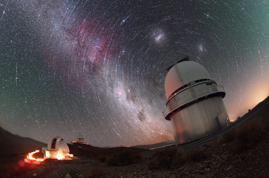 Un accattivante startrail tra i telescopi situati all’osservatorio La Silla di ESO.