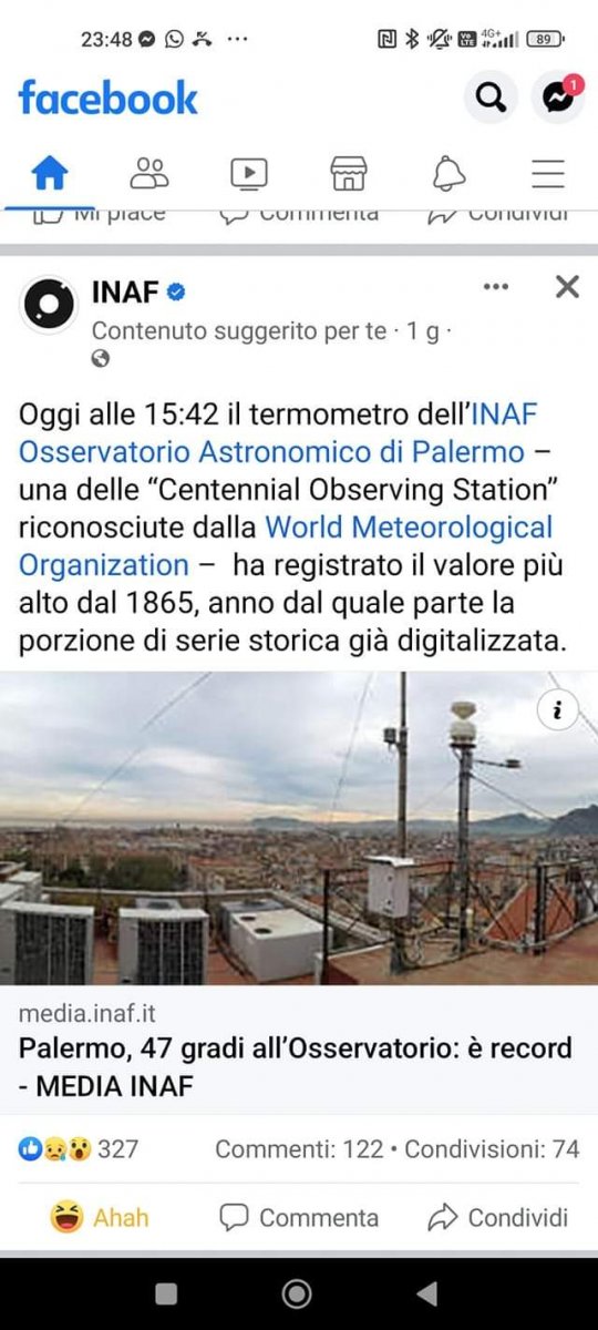 "✍☝Osservate la posizione della stazione meteorologica dell'INAF di Palermo dove è uscito questo comunicato sul sito