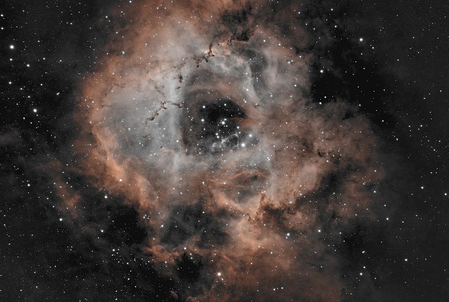 Come preannunciato ho acquistato il filtro SV220 Dual Band da 7nm e la scorsa settimana negli unici 2 giorni di semi sereno (in realtà c'erano delle lievi velature) sono riuscito ad acquisire 5 ore di luce di NGC 2237 Nebulosa Rosetta. il setup è sempre lo stesso tranne che per il filtro. Trattasi di 160 lights da 180sec l'uno. Elaborazione eseguita con Siril, GraXpert, Gimp.Allegato 54733