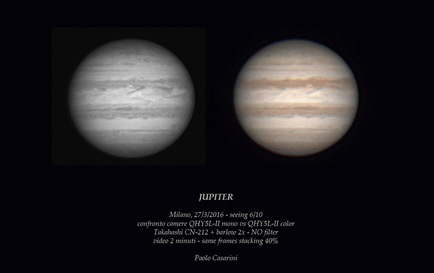 A me il sensore bianco nero sembra che catturi più dettagli, ma potrebbe essere il seeing che è cambiato in quei 20 minuti