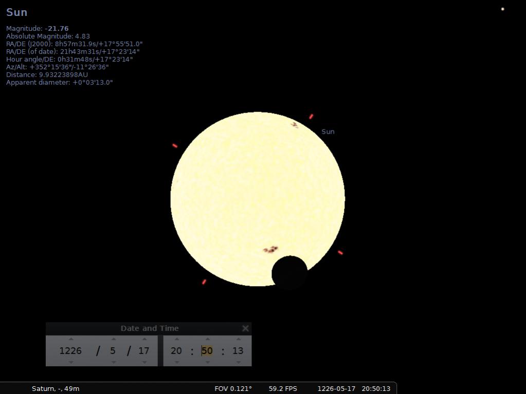 che ne dite di un transito di Giove sul Sole, visto da Saturno o dai suoi paraggi?