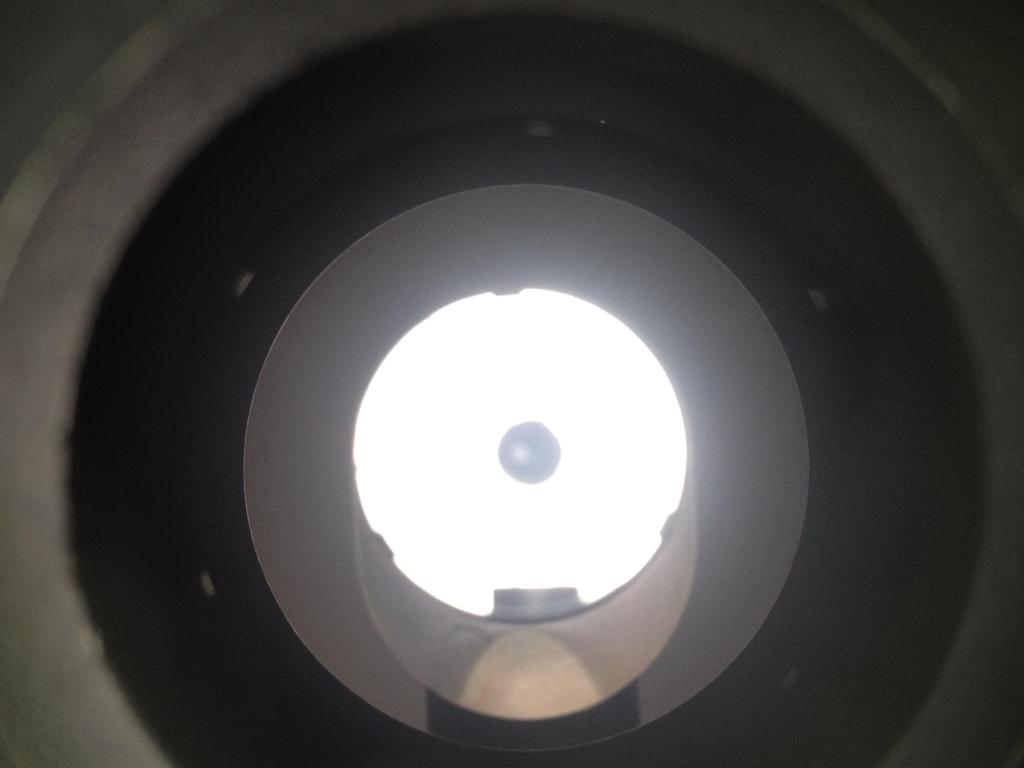 questa è la foto dell'oculare fatta con iphone 4s dal buco di un tappo di palstica modellato perfettamente, con calibro...