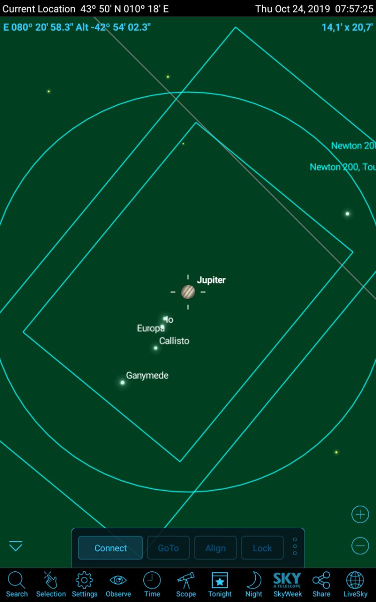 Questa è una simulazione di un Newton 200 puntato su Giove.