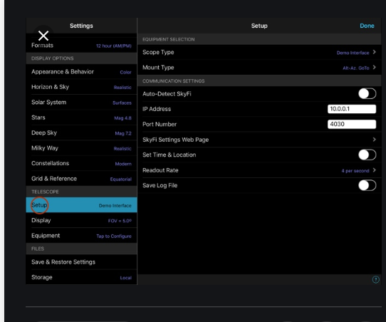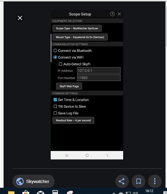 Ho cercato anche di connettere la montatura con Sky Safari Pro (che RILEVA esattamente il tipo di montatura e software associato), ma nulla anche qui. Tenta di effettuare la connessione ma mi ripropina sempre il messaggio (Impossibile connettersi. Immettere correttamente l'indirizzo IP, ecc ecc)