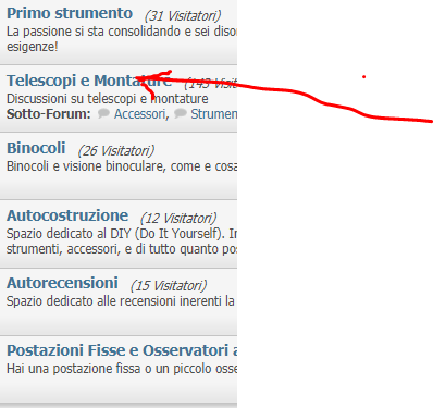 Premi su forum ,da forum scorri la pagina sino a telescopi e montature , premi su invia nuova discussione guarda gli screen che ho postatoAllegato 37478Allegato 37479