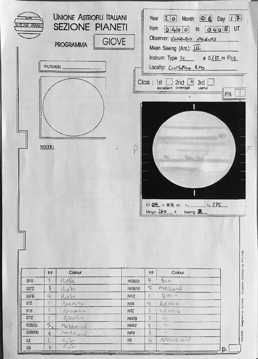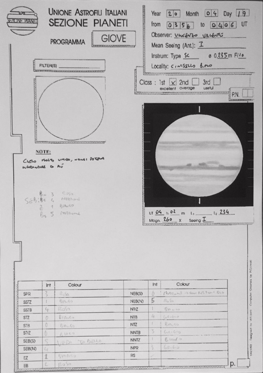 sono i moduli UAI. Permettono di riassumere agilmente le informazioni fondamentali che devono accompagnare un disegno: data, ora, meridiano centrale, ingrandimento, stime di intensità e colore.