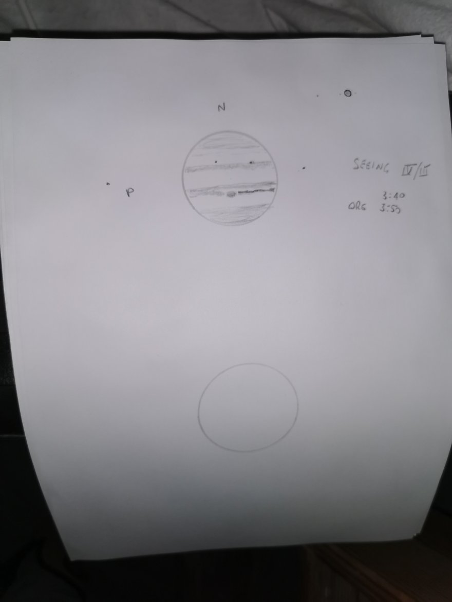 Beh c era la GMR e un ombra, e forse, non so se era lui a destra un knot, forse era Ganymede. Per me é la prima volta, nel caso, di riuscire ad osservare il transito di un satellite sul disco di Giove.
