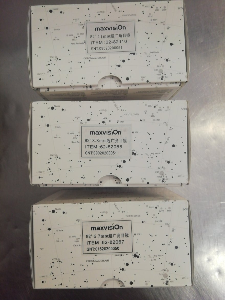 Come accennato in un altro post, ho acquistato su Aliexpress gli oculari maxvisiOn, che sembrerebbero essere i cloni dei famosissimi e collaudatissimi Explore Scientific da 82°.