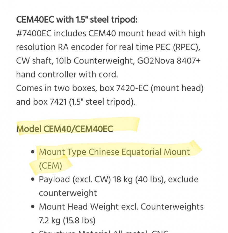 Per la cronaca, CEM = Center Balanced Equatorial Mounts