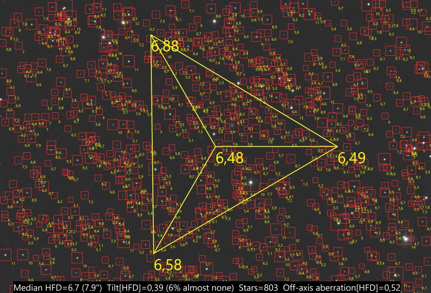 4) non ho sistemato del tutto (e non sono sicuro che lo faro' mai) il backfocus del correttore di coma e nemmeno ho controllato il tilt. Puo' essere invece che la collimazione sia ok (ma non ne sono sicuro del tutto visto il backfocus/tilt non sistemato).