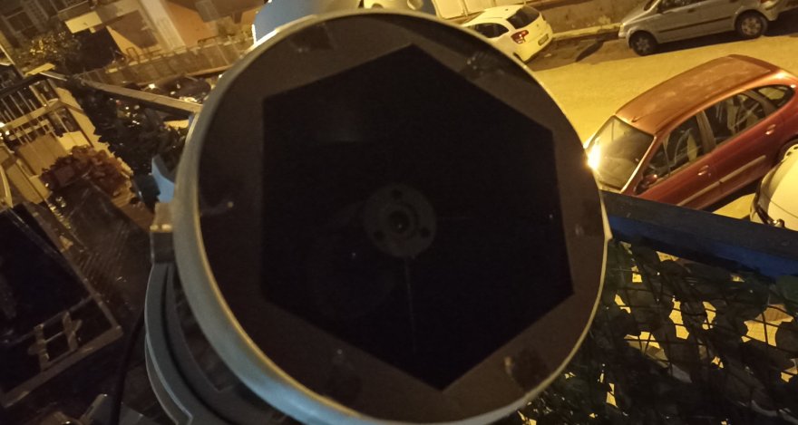 Ultimo, come già detto, è molto utile una maschera apodizzante, per stornare un po di luce dalla primaria (grazie agli spike che si creano), ve ne sono di diversi tipi (e forme), ma in questo caso quella esagonale va bene, la usai qualche anno fa per beccarla con newton 200/1650 ►
