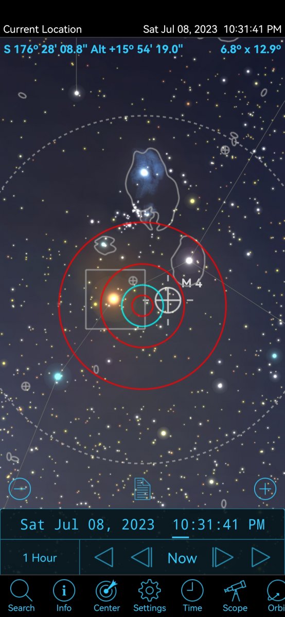 Sono d'accordo per la stella Antares che, forse vale più la pena di vedere quella che M4, stiamo macinando un 150mm Newton, lei cerca a 30x, M4 sarà come M56, se la vede sarà una fortuna perché vuol dire che ha un cielo Bortle3, Lei parla di giardini, alberi e che ha i lividi per spostarsi con il telescopio tra gli alberi, lo scorpione dove lo vedrà? Spero per lei...