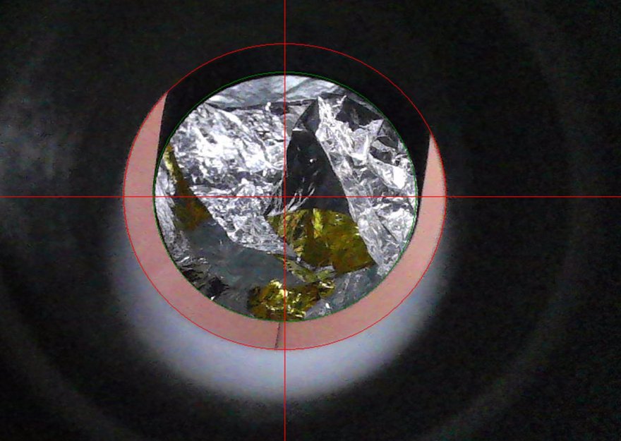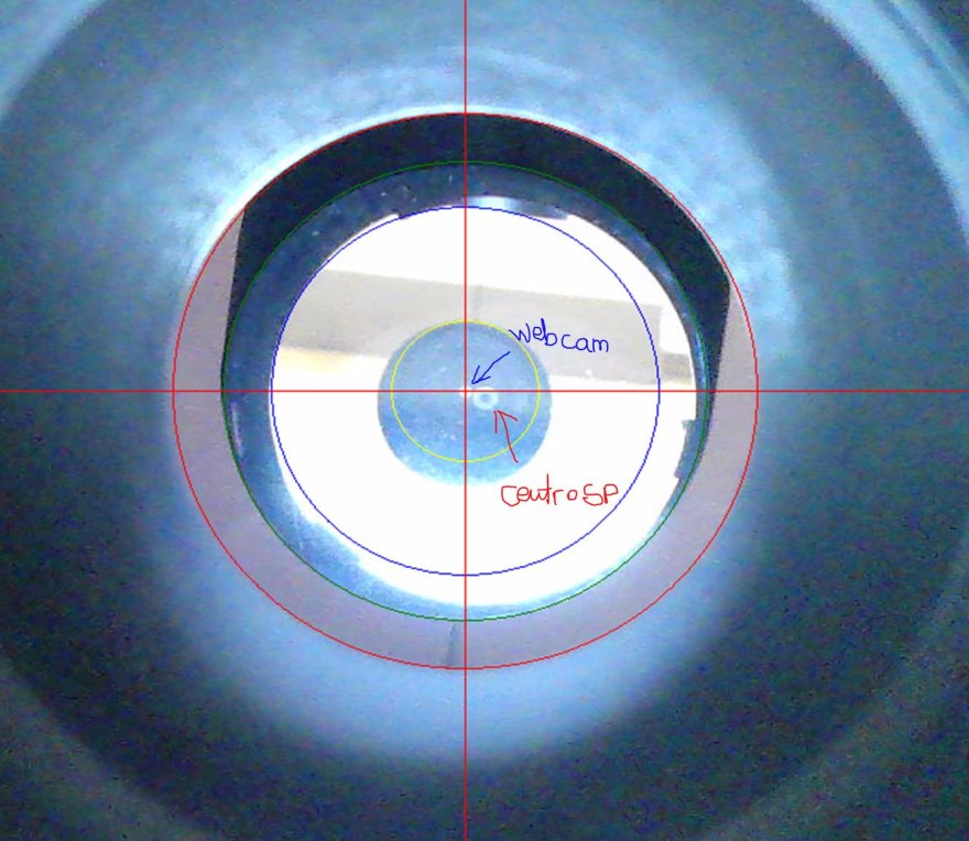 "portare la croce rossa al centro di quel cerchietto grigio" se ci riferiamo alla mia immagine, la croce rossa "mia" è il centro del cerchio rosso e verde e ho fatto in modo che corrisponda col centro della lente della webcam