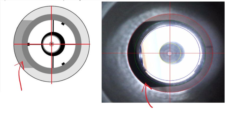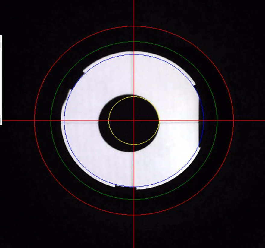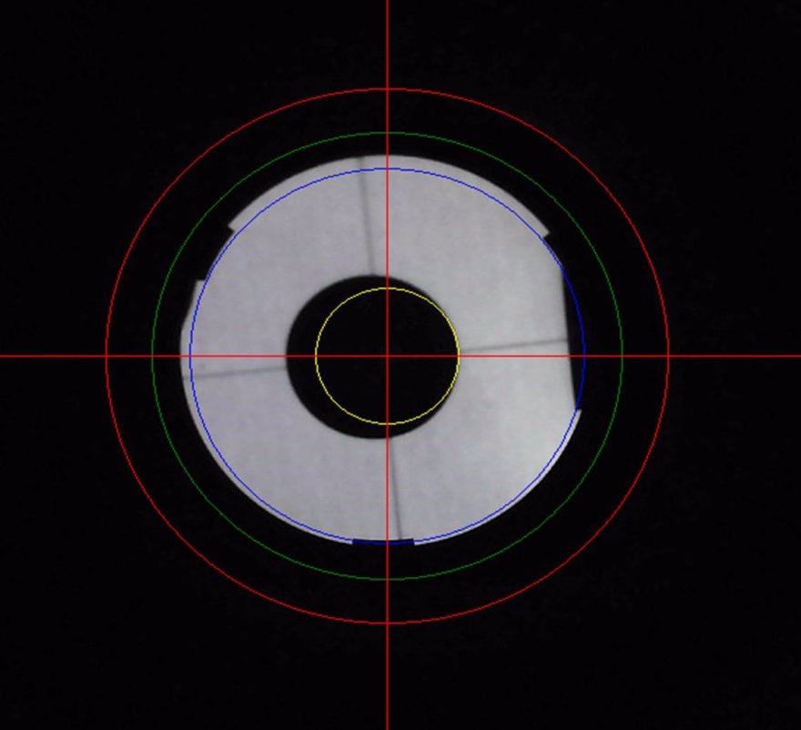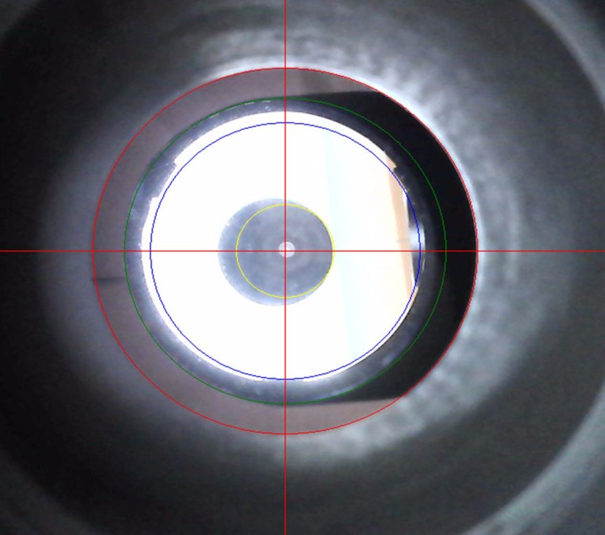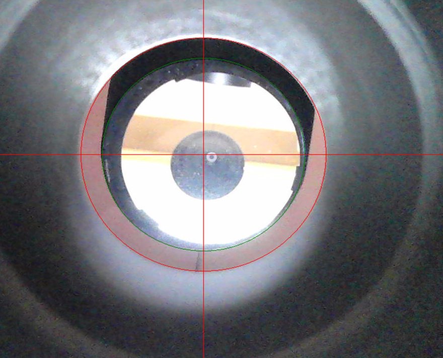 Partendo dal trovare il cerchio che meglio approssima il bordo del focheggiatore (cerchio rosso), ho, come tutte le guide riportano, centrato il secondario facendo in modo che appaia come un cerchio alla webcam (cerchio verde).