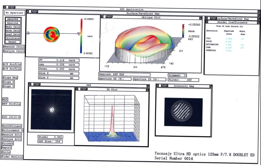 Grazie! Come valuti il suo star test? Ti posso chiedere che valori risultano dal test interferometrico sul tuo esemplare (Strehl, Peak to Valley, RMS)? Grazie.