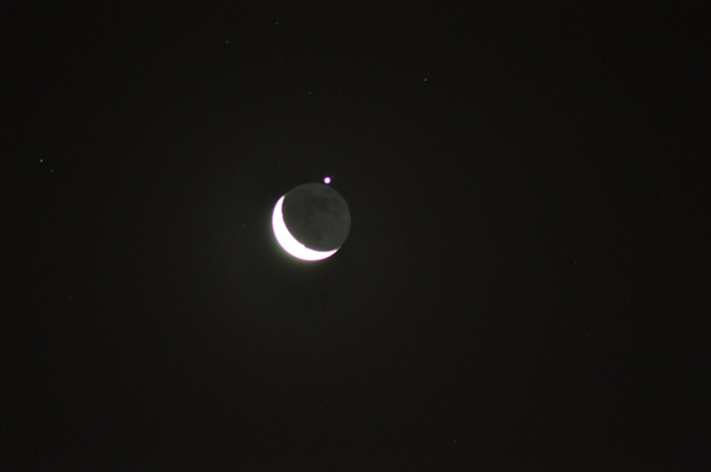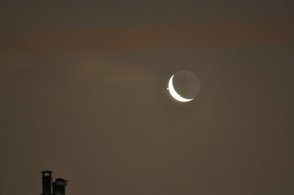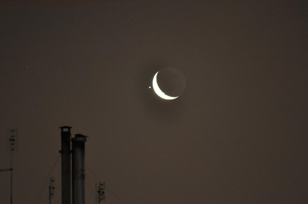 l'ho visto anch'io a occhio nudo,cioè era già finito,mi sono alzato per andare in bagno assonnatissimo,albeggiava già e giove era già staccato dalla luna....ma piuttosto venere lì sotto è luminosissimo adesso,non l'avevo mai visto all'alba... ammazza che roba,me lo ricordo mesi fa quando si vedeva alla sera...era la metà