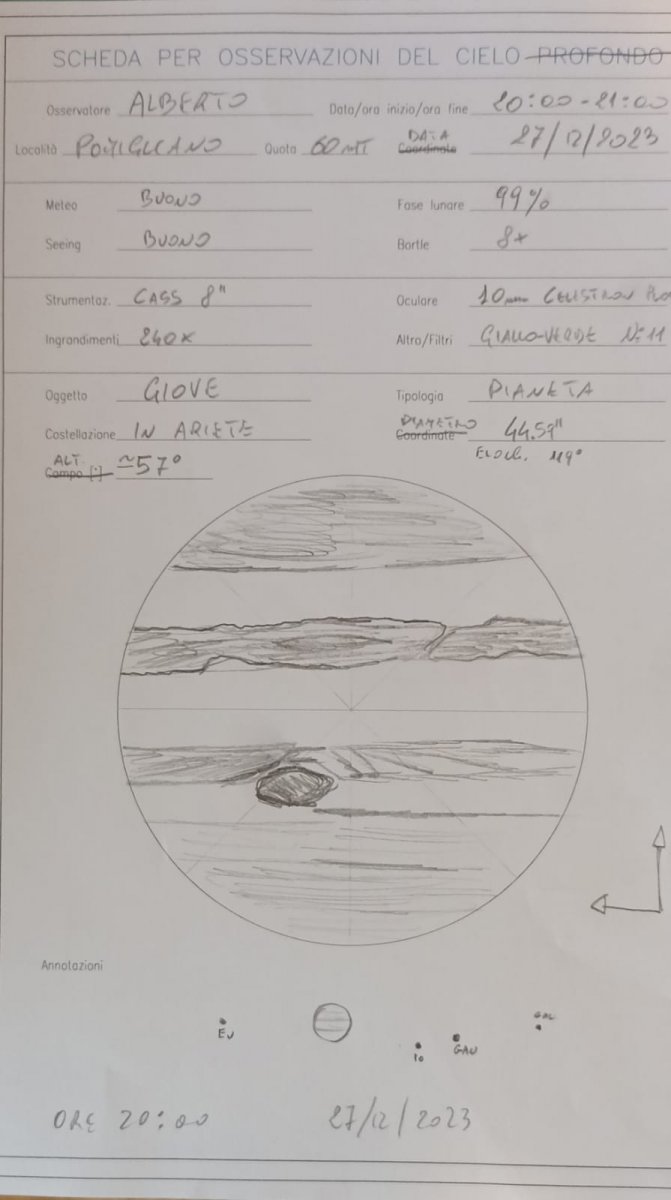 Quando disegno la prima bozza all'oculare, cerco di prendere più appunti possibile sui dettagli che rilevo nonché qualche stima d'intensità e/o colore.