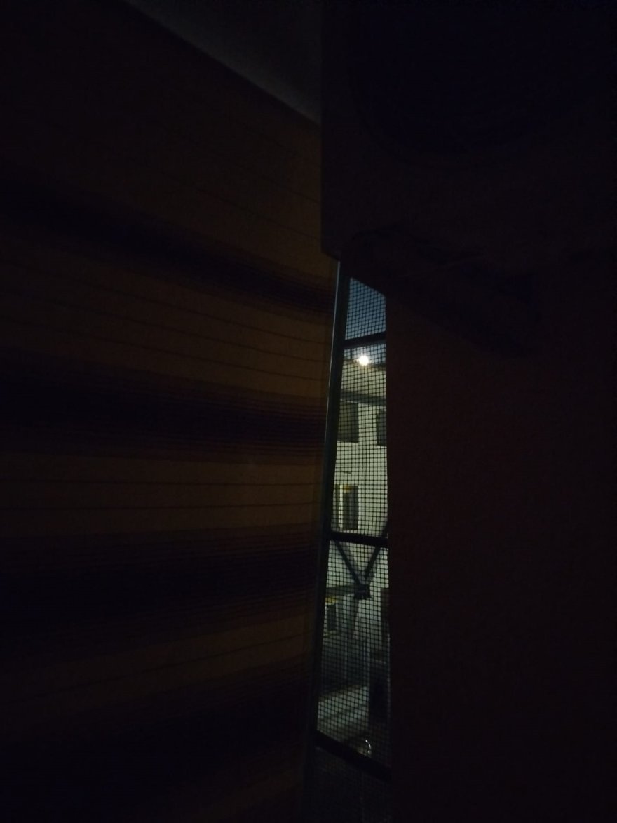il tempo di prendere il cellulare e scattare queste due strane foto dove il raggio di Luna è apparso proprio tra la fine della tenda e il muro del palazzo , laddove c'è una griglia antipiccioni da me costruita anni fa...