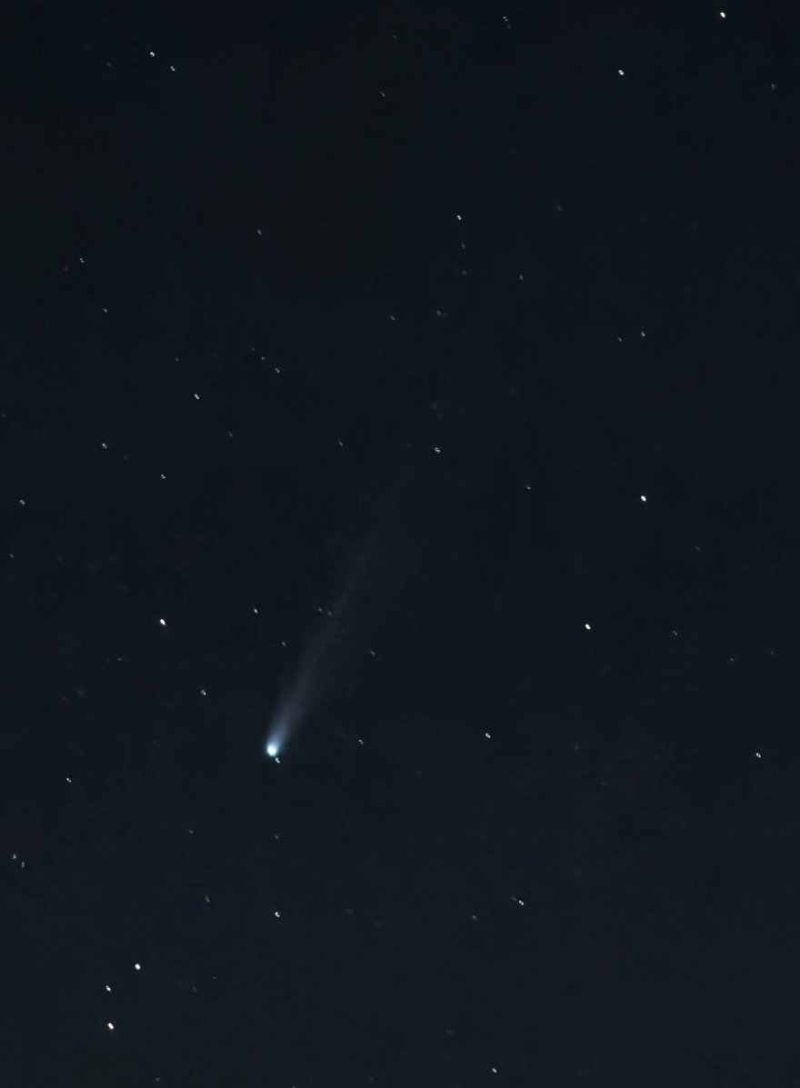 Subito inquadrata facilmente con il binocolo 10x50. Visibile il nucleo e un accenno di coda.